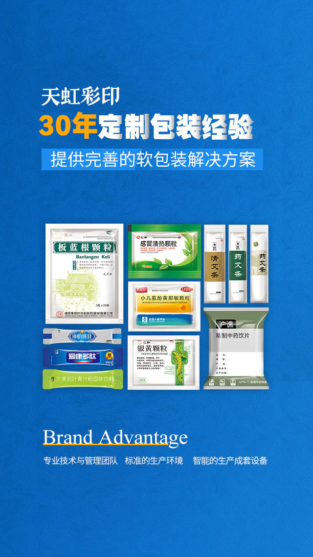武漢市天虹紙塑彩印有限公司成立于1994年8月18日,是一家集設計,印刷,制作于一體的塑料軟包裝高新技術企業,公司坐落于武漢市蔡甸經濟開發區,占地面積33000平方米。公司總投資1.5億元,新建了高于國家D級標準的無菌車間,并在國家藥品監督管理局注冊登記了12個不同材質結構的藥包材生產許可證...
