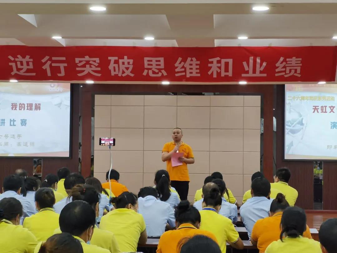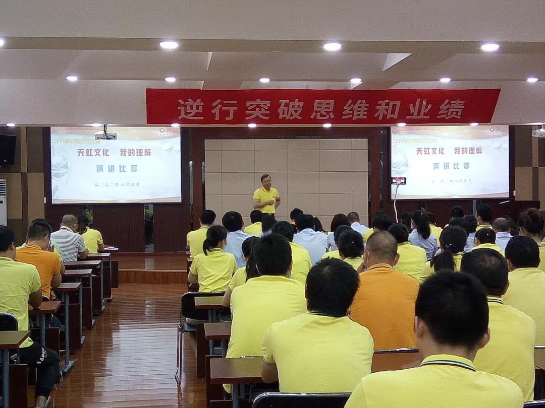 為了進一步弘揚和傳承公司“三個三”文化精神,讓“三個三”文化生根在員工心中,落地在公司的發展中,踐行在每名員工的行動中,同時也為員工搭建展示才華的舞臺,不斷充分挖掘員工的潛質,培養有激情、有活力的天虹人。8月3日,在公司26周年司慶來臨之際,開展“天虹文化,我的理解”演講比賽。