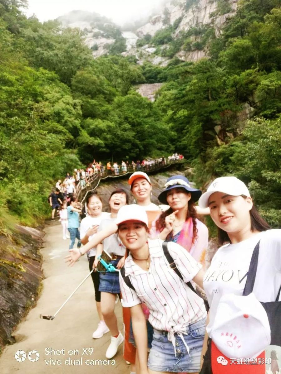 七月的武漢,驕陽似火。在建黨97周年和司慶24周年之際,武漢市天虹紙塑彩印有限公司黨工團組織黨員、員工及家屬到風光秀麗的大別山避暑、觀光旅游。在開展黨建活動的同時,讓員工一起學習黨員的優良作風,感受黨組織生活,也在這炎炎夏日為員工和家屬送去清涼。